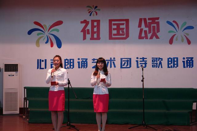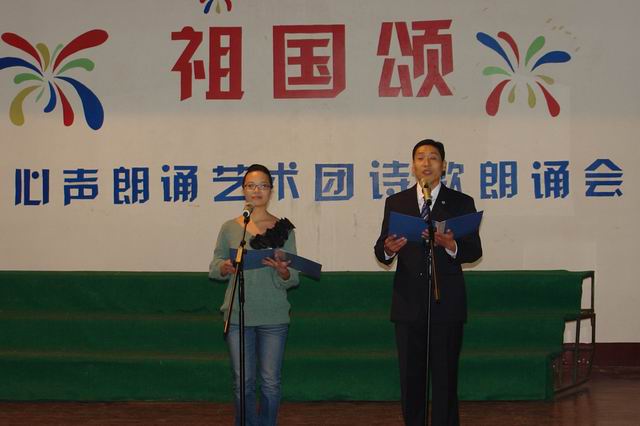 2011年11月15日晚,我校心声朗诵艺术团在小礼堂举行“祖国颂”专场演出,大专班一年级学生观看了演出。整场演出始终洋溢着热烈的气氛,演出人员感情真挚、表演精湛;观众热情文明、观看秩序井然。李校长和工会王主席的表演《我爱你中国》把演出推向高潮,全场报以热烈的掌声。唐山市教育系统朗诵艺术大赛获奖作品《没有共产党就没有新中国》再现往日风采,整场晚会以优美的语言给观众奉献了一场艺术大餐,全体演员对党对祖国的热爱之情溢于言表,强烈地震撼了每位观众的心灵。