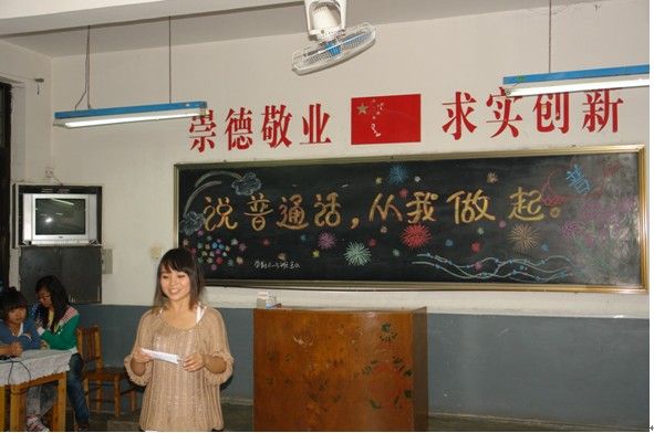五、“板报、主题班会”齐亮相。全校每班办一期“说普通话,写规范字”的黑板报和以“说普通话,写规范字,从我做起”为主题的班会。