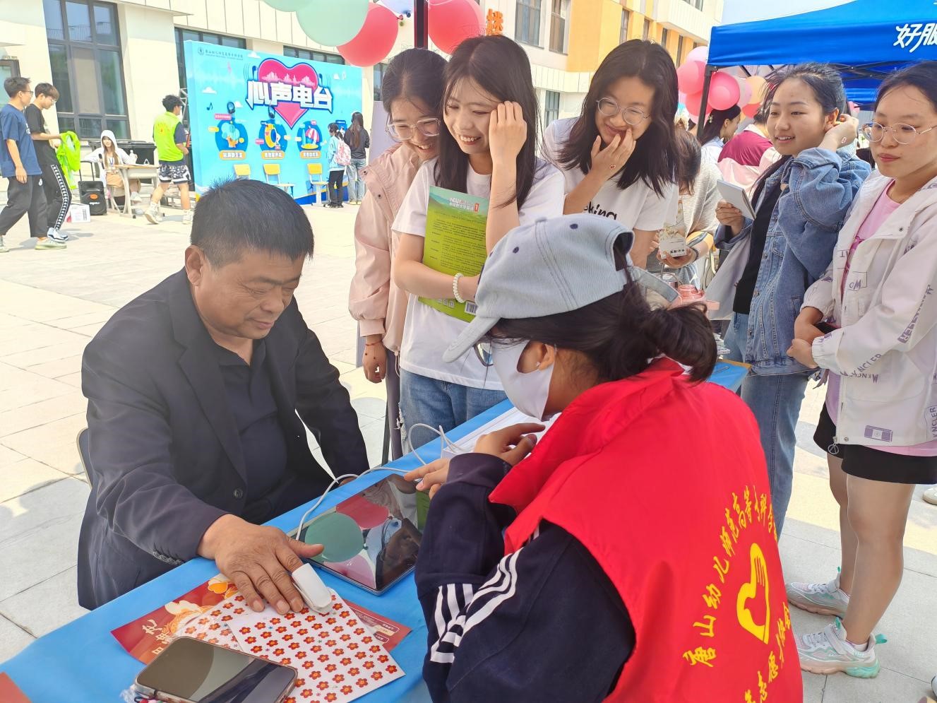 现场气氛热烈,学生们积极参与。温馨的“情绪驿站”“涂色解压”“笑对人生”,刺激的“心花怒放”“眼疾手快”,神奇的HRV身心反馈仪、心声电台让同学们增进了交流,释放了压力。