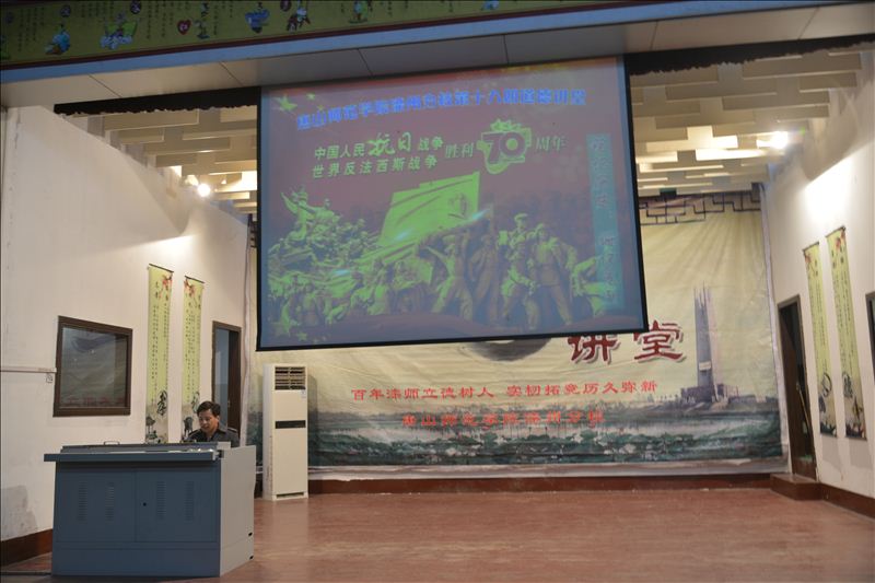 10月28日,我校在小礼堂以“纪念抗日战争胜利70周年”为主题召开“道德讲堂”活动。这是我校第18期“道德讲堂”活动,全校300多名师生参加了活动。 当天下午,在主持人的带领下,全体师生首先进行了“思省心”:你是否知道我们当前的幸福生活是谁为我们创造的吗?你是否记得八年抗战何时开始何时结束吗?你是否记得当年日本在中国犯下的暴行吗? 通过静默反思,把师生带入到当天的活动氛围中去。全体师生起立同唱《中华人民共和国国歌》,观看抗日战争短片《英烈赵一曼》。铿锵有力的旋律、赵一曼同志那种不屈不饶、坚强不屈的献身精神无不感染着在场的每一个人。 在此基础上,我校基础部科学教研室刘建国教授以《碧血化鹤 勿忘国恨》为题作了主题宣讲。刘老师长期从事中国历史、滦州地方历史文化等研究与教学。他深入浅出地向大家讲解了纪念抗日战争胜利70周年的原因及重大的现实、国际意义,介绍了我校吴绍舟、高朗豁、古云亭等许多在抗日战争中同日本帝国主义侵略者英勇斗争的师生们的英勇事迹,并呼吁大家从自身做起,以实际行动爱国、爱家乡、爱学校。 接下来,主持人带领大家齐诵吉鸿昌、刘茂恩、马玉仁等抗日英雄的抗战名言。他们在民族危亡的紧要关头,挺身而出,英勇抗日;他们即使在战争最危急时刻,始终保持着民族气节,威武不屈,甚至不惜流血牺牲。 “前事不忘,后事之师”。历史事实表明,中国人民具有深厚的爱国精神传统,滦州分校是一所具有悠久革命历史传统的学校。全体师生通过唱、看、听、诵,上了一堂生动的爱国主义思想教育课。最后,在主持人带领下,全体师生面对党旗,庄严承诺:“铭记历史、缅怀先烈;勿忘国耻、珍爱和平;勤奋学习,圆梦中国”。 爱国精神,必有来人。此次“道德讲堂”活动还安排了向参加本次活动的与会者赠送一场爱国电影《南京!南京!》,倡议开展一次“幼专申办我出力”校园志愿服务活动,撰写活动感悟等道德实践活动。 道德的种子需要播撒,道德的力量需要传递。道德讲堂领导小组还为大家赠送了“微信书签”;该书签正面印有学校官方微信号和二维码、投稿信箱、建校石刻碑、百年银杏树、学校未来综合楼南立面透视图;背面印有道德讲堂标志及滦师精神。希望全体师生和社会人士积极关注“百年滦师”微信公众平台,共同传播道德精神的正能量。